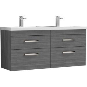 Model Number: ATH046C Introducing the Nuie Athena Anthracite Woodgrain 1200mm Wall Hung 4 Drawer Vanity Unit and Double Polymarble Basins, a stunning addition to any modern bathroom. This sophisticated vanity unit combines style and functionality, featuring a rich anthracite woodgrain finish that beautifully complements a range of contemporary décors. Designed for homeowners who value both aesthetics and practicality, the ATH046C provides ample storage with four spacious soft-close drawers, ensuring your bathroom essentials are neatly tucked away. The two Polymarble basins add a touch of elegance while offering practical features, including overflow and compatibility with mono basin mixer taps. The generous dimensions of the unit provide a comfortable and functional workspace, making it an ideal choice for busy households. Elevate your bathroom experience with the sleek lines and premium finish of this exceptional vanity unit, designed to stand the test of time. Key Features: Modern