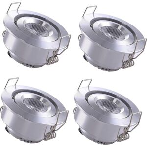 The recessed spotlights have an installation depth of 24 mm. The outer diameter is Ø52 mm. The ceiling cutout is Ø45-50 mm. Light Parameter: 1W COB LED, Warm White, Color Temperature: 3000K, Lumen: 120 Thanks to their simple design and small size, these small, swivel-mounted LED recessed spotlights can be used in many ways in the home environment. Ideal for Showcase, Ceiling, Kitchen, Closet, DIY lighting etc. Package: 4x Silver LED Recessed Spotlights with Transformer