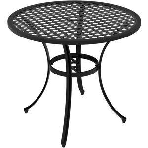 Feature: A Φ5cm hole fits a Φ4.8cm umbrella pole Powder coated cast aluminium frame is anti-rust and strength Adjustable foot pads adapt to uneven floor Large tabletop provides place for drinks and snacks The grid top prevents water build-up and adds an elegant touch Assembly required Specification: Colour: Black Material: Cast Aluminium Table Dimension: 85W x 85D x 72Hcm Umbrella Hole Diameter: 5cm Suitable Umbrella Pole Diameter: 4.8cm Weight Capacity: 70kg Item Label: 84G-335V00BK 1 x Garden Table 1 x Manual
