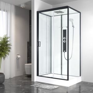Vidalux Kontrast Lux 1100 x 800 Rectangular Hydro Shower Cabin Introducing the range of ‘Kontrast Showers’ from Vidalux, UK’s leading and best-reviewed shower and spar manufacturer. Bold, brilliant, and dazzling sleek looks are offered in a hassle-free and easy installation shower cabin, the Kontrast range is a wonderful mix of black framework mix with clean, crisp white glass for the striking, modern design The Kontrast range offers the perfect mixture of striking yet modern design together with the reliability and customer service only the UK’s number one shower specialist can offer. The ‘Lux’ variant on the Kontrast range offers a large top monsoon shower in the roof of this sleek model. This large indulging soaker allows for a full-body shower. Should you wish to keep your hair dry, you may wish to make use of the multi-spray hand shower, both can be used individually and are controlled by the high-quality stainless steel, Vernet thermostatic shower valve, located seamlessly into