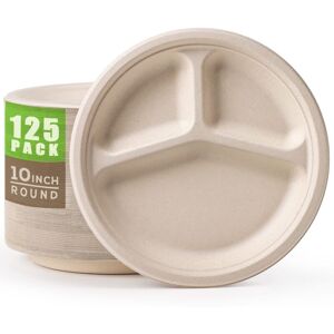 100% Compostable: All Gezond paper plates are made from compostable and degradable sugarcane. Meets ASTM D6400, D6868 standards. Suitable for industrial compost (1-6 months) and home compost (composting time varies by household) Microwave Safe: With improved molding technology, the 10 inch eco-friendly divided paper plate is thicker and stronger. Microwaveable up to 248°F without deformation 【Eco-Friendly & Sustainable】100% tree-free. Plastic-free, wax-lined, unbleached, dye-free, gluten-free, BPA-free, cut-resistant and oil-resistant. Ideal for serving hot or cold 【Occasions】With a perfect size plate of 10 inches, not too small or too big, it is ideal for daily meals, parties, weddings, picnics, camping, eco-themed parties, etc. 【Environmentalists' Favor】Not only free your hands from washing dishes, but the most important is that choosing our eco-friendly products over plastic plates would reduce carbon footprint, decrease landfill waste, and reduce harmful residue in the environment.