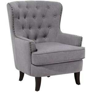 Traditional Tufted Upholstered Wingback. This grandiose wingback armchair is sure to bring an inviting feel to a conversation area, home library or a reading nook. Designed in a classic shape with a high back and winged sides it comes with a thickly padded seat so that you can get comfy and relax. Boasting deep buttoned back and decorative nail heads on the outline the chair timeless style fits right in all modern, as well as traditional settings. Details: Product Type: Armchair Style: Retro General Color: Grey, Brown Shade: Light Grey Material Type: Fabric Main Material: Fabric Additional Material: Birch Wood Filling Material: Foam Legs material: Wood Seat Material: Fabric Material Composition: 100% Polyester Arm Style: Track Armrests: Yes Leg Caps/ Pads: Yes Pattern: Solid Reclining: No Seat Construction: Sinuous Springs Seat Foam Density: 22 kg/m3 Dimensions: Armrests Height: 55 cm Depth: 90 cm Seat Thickness: 26 cm Seat Height: 45 cm Width: 75 cm Height: 93 cm Seating Surface:
