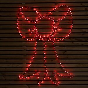 Add a bold seasonal flourish to your seasonal decor with this Light up Christmas Bow with Twinkling LEDs. A festive decoration guaranteed to add sparkle and style, Whether placed on a garden fence, across a wall, or in a large window, this glowing bow will instantly elevate your festive decor with warmth and colour. This striking decoration features 315 red LEDs, combining static and flashing lights to create a beautiful twinkling effect that captures the joy and vibrance of the season. Designed with a bold bow shape, it makes a standout addition to any Christmas display. Constructed on a durable black metal frame, the decoration is suitable for indoor and outdoor use in sheltered areas, with the transformer required to remain indoors. A 5m mains power cable allows for flexible placement, making setup simple and convenient. Suitable for indoor and outdoor use. Product Specifications 315 Red LEDs Height 100cm Length 75cm Mains Powered with 5m Power Cable