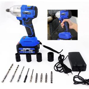 *2-in-1 multi-function impact driver and cordless drill: New updated design with sockets and drill bits, can be used as an impact driver / cordless drill. Positive and negative mode and free toggle switch for different working conditions. Disassembly and assembly, drilling, one machine for multiple purposes (drilling and screwing), can be used for car repairs, large construction projects, heavy equipment maintenance or product assembly. *Rechargeable Lithium Ion Battery: Comes with a High powerful battery and charger to ensure long-lasting run time. It can be charged at any time and is suitable for both indoor and outdoor use. LED indicator consumes the remaining battery power *Excellent Design: This is compact and powerful with a good ergonomic grip. It can reduce fatigue during use. The variable speed control is great and works seamlessly. The low-vibration design makes it more stable. *Powerful cordless impact wrench & cordless drill in 1: Remove slightly rusted or overtightened