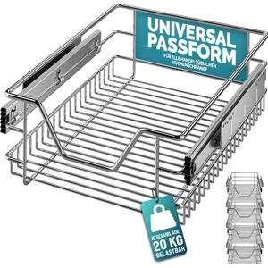 New shelves in your cupboards! These versatile telescopic drawers are ideal for the kitchen, bathroom, bedroom cupboard or workshop. Quickly and easily create new storage options in your cupboards by retrofitting them. The drawers are available for various common cupboard widths. Product Details: - Telescopic drawer for retrofitting - Greater clarity and organisation in your cupboards - 6 screws for optimised hold - All screws in silver, suitable for all kitchen decors - Can be used flexibly - Simple assembly - for standard 30cm/40cm/50cm/60cm cabinet widths (external dimensions) Important Drawer and Cupboard Dimensions: 30 cm Door - 26/27 cm Internal Cupboard Width - Basket Width 19 cm 40 cm Door - 36/37 cm Internal Cupboard Width - Basket Width 29 cm 50 cm Door - 46/47 cm Internal Cupboard Width - Basket Width 39 cm 60 cm Door - 56/57 cm Internal Cupboard Width - Basket Width 49 cm Height 14 cm Length 44 cm Extended Length 83 cm Technical specifications: - Material: chrome-plated