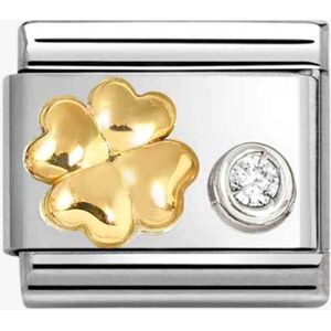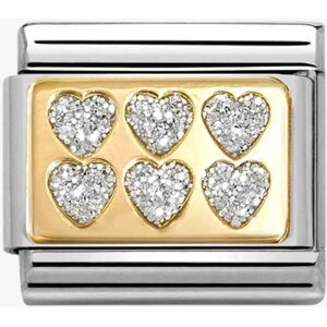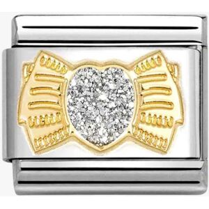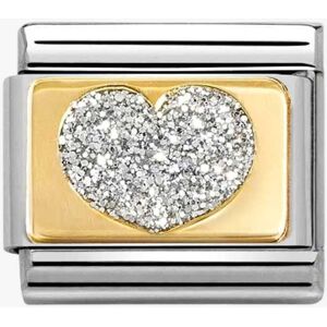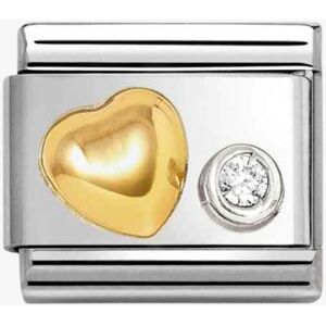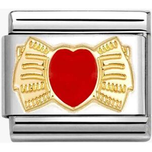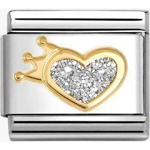 A sleek stainless steel Nomination charm featuring a vibrant red enamel heart, elegantly crowned with an 18ct yellow gold crown. This charming piece combines modern design with a touch of regal sophistication, perfect for adding a personal and stylish accent to your bracelet. Item Code: 030207/54