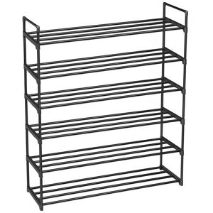 Introductions: It's a great storage rack for your doorway, entryway and closet. Keep your shoes organized and off the floor with this Shoe Rack. Features: 1. Stackable 2. Stores up to 30 pairs of shoes 3. Simple structure and yet practical and functional 4. It helps you easily locate the shoes you are looking for and prevents those time-consuming household hunts for a missing shoe 5. Made of superior materials, it is durable and reliable for long-term use 6. It is easy to install and clean Specifications: 1. Item Type: Shoe Rack 2. Color: Black 3. Dimensions: (36.4 x 12.2 x 50)" / (92.5 x 31 x 127)cm (L x W x H) 4. Tiers: 6 Tiers 5. Design: Space Saving 6. Feature: Easy Assembled 7. Suitable for: Home, Dormitory, Office, etc. 8. Style: Casual Package Includes: 1 x Shoe Rack