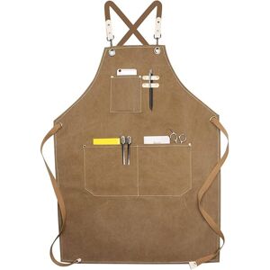 HIGH QUALITY CANVAS: The men's workshop apron is made of premium canvas with exquisite workmanship and strong neat sewing thread, wear-resistant and durable, a good helper for your work. ALL-DAY COMFORT: Prevent neck pain with our adjustable cross back strap. The full coverage bib apron measures 22.4" wide and 31" high for unisex size. VERSATILE TOOL POCKETS: Large tool pockets, easy-access accessories on the front. Quick-access cell phone/pencil pocket on the chest. Large "kangaroo" style hand pocket. PROFESSIONAL STYLE: Low-profile design without bulky waist pockets. Matte black color and elegant for a professional look. GENERAL USE: Tool apron with pockets, utility apron for tool shop, carpenter apron, woodworker, woodcraft, woodturning, workshop, machinists, men's apron, tattoo artists, bartenders, metalworking, light welding, ironworker, blacksmiths, gunsmiths, turners, baristas, butchers, brewers, painters, men's apron, woodworking tools, safety equipment, men's apron, etc.