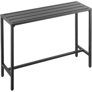 Transform your outdoor space into a cozy retreat. This 47 x 15-inch bar table is designed with a durable metal frame and a robust, water-resistant tabletop that maintains its shape and integrity over time. Perfect for use by the pool, in outdoor gardens, or indoor dining spaces, it serves as a versatile addition for casual gatherings or quiet moments of leisure. Perfectly suited for small groups of 2 to 4 individuals. Sturdy and Long-Lasting Construction Durable and water-resistant tabletop designed for versatile use in various environments. Effortless Setup Suitable for Both Indoor and Outdoor Applications Key Features Perfect for Small Gatherings: Standing at 39 inches tall, this patio bar table is a great fit for cozy indoor or outdoor areas. Its 47 x 15-inch tabletop provides ample space for wine glasses, snack plates, and other essentials, making it ideal for 2-4 people to enjoy quality time together. Robust and Stable Design: Built with carbon steel legs and a reinforced bottom