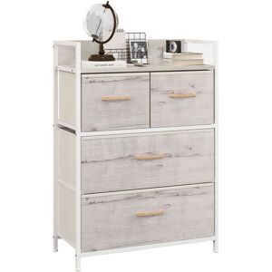 A spacious and simple approach to clothes storage, with this HOMCOM chest of drawers. It comes in industrial and rustic wood-effect design, a minimal and versatile look: it's great for plenty of different interior styles. This dresser comes with four drawers for storing and organising various garments. A powder coated steel frame for a strong core, finished with adjustable feet for balance. Specifications: ● Colour: Black, Natural Wood Finish ● Material: Non-woven Fabric (100% polyester), Steel, MDF ● Overall Dimension: 60W x 29D x 85Hcm ● Top Size: 57W x 27.5Dcm ● Inner Drawer Size: 56W x 28D x 21.5Hcm (large), 28W x 28D x 21.5Hcm (small) ● Bottom Height from the Ground: 5cm ● Weight Capacity: 25kg (overall), 15kg (top), 3kg (each drawer) ● Item Label: 831-760V00ND Features: ● Four storage drawers with handles ● Drawers can be removed and folded ● Top shelf on bedroom drawers for handy display space ● Powder coated steel frame for a strong core ● Adjustable feet for balance ●