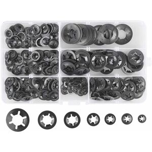 Specification: Material: 65 manganese steel. Quantity: 280pcs Size: Lock washers: M3*9mm, M4*12mm, M5*12mm, M6*14mm, M8*18mm, M10*20mm, M12*25mm Plastic box: 9.5*17*2.2cm Color: Black Packing list: 40 x M3 Starlock Washer 40 x M4 Starlock Washer 40 x M5 Starlock Washer 60 x M6 Starlock Washer 40: If you have any problems with our products, please contact us for a refund or replacement.