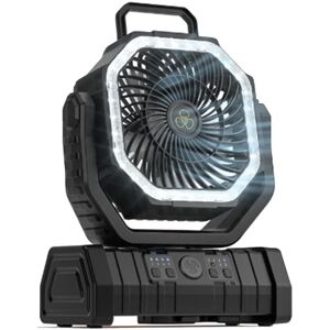 MASSIVE 10000mAh BATTERY: Unlike other models, our camping fan features a robust 10000mAh rechargeable battery that ensures 12-58 hours of continuous operation, providing extended cooling and comfort in outdoor settings or during power outages. ENHANCED ILLUMINATION FEATURES: This tent fan includes a super bright LED lantern with three brightness settings, ideal for nighttime outdoor activities like barbecues and fishing. Its convenient hook allows for easy hanging inside tents or on branches, optimizing space. CONVENIENT REMOTE CONTROL & TIMER: Operate your fan effortlessly with the included remote control, which complements the manual buttons. The timer function adds an extra layer of convenience, allowing you to set operating times according to your needs. COMPACT AND PORTABLE DESIGN: Designed to fit comfortably in a backpack, this fan is ideal for travel. The innovative hook is rotatable and foldable, making it simple to hang in tents or position on flat surfaces, such as desks or
