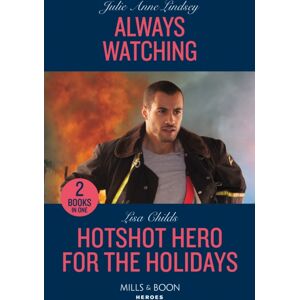 Always Watching By Julie Anne Lindsey Is she being paranoid? Suspecting she’s being followed, Scarlet Wills hires local PI Austin Beaumont.But when a brutal attack lands Scarlet in hospital, it’s clear they’re up against a rapidly escalating threat.Posing as lovers ignites passion that threatens their determination to keep things strictly professional. And they’re running out of time to catch someone who’ll stop at nothing to make Scarlet his… Hotshot Hero for the HolidaysBy Lisa Childs Is a fake relationship the perfect bait? When firefighter Trent Miles responds to a fire just weeks before Christmas, he can’t believe it’s his own house—and there’s a body inside.Detective Heather Bolton has a plan to catch the killer, but it’s risky.Not only does it put both Heather and Trent in the crosshairs of a murderer, but it means fanning the flames of a passion that threatens to consume them…