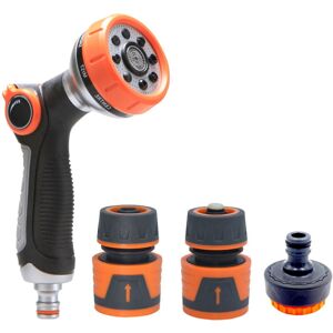 【Multiple Watering Modes】The watering wand has 8 kinds of watering functions, such as spray, fountain, cone and other watering modes. 【High-quality material】It is made of plastic. Made of high-quality ABS environmental protection material. and a strong zinc alloy, lightweight and durable. high strength. [Thumb switch] The switch can be operated; One-handed operation to control the water flow, making watering more convenient. [High applicability] Standard 1/2 inch universal interface that fits most accessories on the market.< / span > 【Usage【Multiple scenes】Garden watering, car washing, pet shower, etc. li>