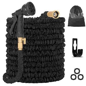 【New improved garden hose】The second generation upgraded garden hose is better than the first generation. Double latex hoses and sturdy metal fittings make the 50ft water pipe very sturdy and durable. Thanks to the use of high quality materials, the pipe will not break, split or crush. This sturdy hose has a longer service life. 【Stretchable and flexible design】This expandable garden hose starts at 17 feet; When water enters the garden hose, the hose rapidly expands 3 times its length (50ft/15m) under standard pressure and returns to its original length within minutes of draining. The expansion pipe is flexible enough and the pipe will never be tangled, twisted or bent. 【Lightweight and portable】The weight of the garden hose is less than 1/3 of the hose of the garden hose. traditional water bottle of the same length, and it is also equipped with a storage bag and a pipe holder. When not in use, simply empty the water from the stretch hose and store it in a cool place. The storage bag