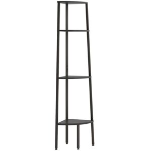 Create an extra storage area in a limited space with this 4-tier corner shelf! Strong steel construction: The storage shelf has a strong steel frame, which ensures sturdiness and stability. Ample storage space: The corner bookcase takes little space while offering ample space to store your books, plants, picture frames and any additional stuff. Wide application: The practical shelf is perfectly suitable for your home and office, including your living room, bathroom, bedroom, balcony, etc. WARNING: To prevent overturning, this product must be used with the wall attachment device provided. Note: Each product comes with an assembly manual in the box for easy assembly. Colour: Black Material: Engineered wood, steel Dimensions: 45.5 x 31.5 x 150 cm (W x D x H) Max. load capacity (total): 40 kg Max. load capacity per shelf: 10 kg Legal Documents: More details about preventing your furniture from tipping over can be found here SKU: 336393 EU responsible party Haba Trading B.V. Mary