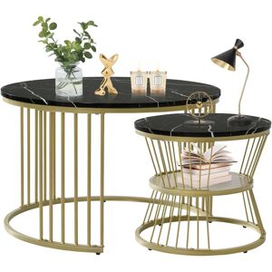 NOTE:Not made of marble, not made of rock slabs; The material of this product is MDF+Iron frame+The table top has a PU high-gloss lacquer finish that creates a delicate high-gloss effect. There is a colour difference between the colour of the table board and the colour of the cabinet, please buy with caution. Made of welded iron parts, there will be a little welding slag and raised solder joints at the welding place, if you mind, please buy with caution. SET of 2 DESIGN: The coffee table set includes a large coffee table (70*70*45cm) and a small coffee table (45*45*40cm).Drawer inner size:(21.5*30*6.5cm) A small coffee table can be placed under the bigger coffee table. You can combine them as you like. PRACTICAL FURNITURE: This living room side table is ideal for small spaces. It can be used for holding books, magazines, laptops or e-readers. You can also use it as a small coffee table. VERSATILE: Each of the tables has multiple uses. You can place them next to the sofa in the living