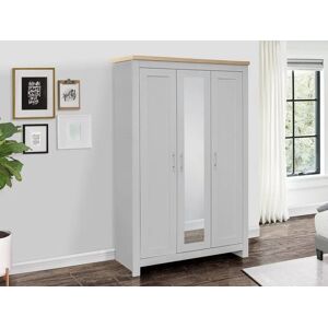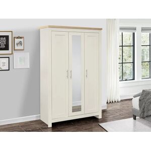 Inspired by classic farmhouse furniture the Highgate range has been designed to complement both modern and traditional homes. Available in cream & oak, grey & oak, olive & oak and navy & oak this range will suite a wide array of interiors. The Highgate 3 door wardrobe is spacious behind double doors, featuring a hanging rail. The doors are finished off with contemporary silver handles and a mirror. Birlea 3 Door Mirror Wardrobe Highgate Farmhouse Shabby Chic in Cream