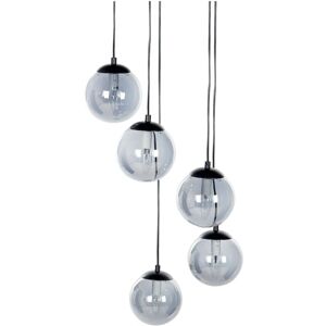 Redefine your ambience with this 5-light pendant lamp. Crafted with a steel base and half-transparent smoked glass shades, it emanates modern sophistication and glamorous allure. Effortlessly chic and easy to maintain, this fixture casts a soft, enchanting glow, elevating your space with durability and captivating charm. Beliani Base Finish: Matte Black, Shade Colour: Black