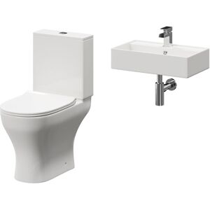 Model Number: WDB91738 For a contemporary bathroom solution, look no further than the Tomar 505mm Wall Hung Basin and Toilet Suite including Round Brushed Brass Bottle Trap and Open Back Toilet. Both components of the suite are made from high-quality Vitreous China, making them attractive and easy to clean The slim, rectangular basin is wall-mountable saving space whilst refusing to compromise on style. Included is a brushed brass bottle trap, adding to the basin's sleek finish and keeping your sink clean. The basin comes with a pre-drilled tap hole, so you can choose the ideal basin mixer tap. The sleek open-back toilet provides both easy maintenance access and a modern look for your bathroom. Save water with dual flushing options and minimise noise with the soft-close toilet seat. Now all you need to complete your gorgeous suite is the perfect tap. Explore our entire range of basin mixer taps today! Key features Soft close toilet seat Push button dual flushing mechanism Basin comes