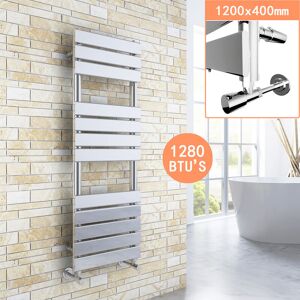 This towel rail radiator features high heat output as well as good looking,it will be an ideal choice radiator for your bathroom. It made from durable low carbon steel construction with high quality chrome finish which definitely will last for a long time. Accreditations & Testing: Material: SPCC Conforms to BS EN442 standards Registered: Complies with ISO9001:2008 Beautiful mirror chrome finish Pressure tested to 10 bar / maximum working pressure 8 bar Finish is designed to exceed 200 hours of neutral acid salt spray testing Suitable for all UK central heating systems Connects to your central heating system like a normal radiator Includes radiator valve Height 1200mm Width 400mm Color Chrome Panel Single Tube Flat BTU 1100-1600 Dimension Environmentally Friendly Material The high quality radiator is low-carbon energy-saving,non-toxic,odorless,non-polluting, more cost-effective than general materials Efficient and durability High quality mild steel with a three-layer powder-coated