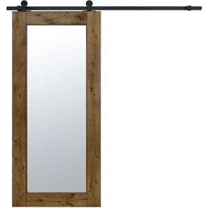If you want to add a touch of rustic character to your interior, the MIRROR door is the perfect choice. The combination of a wooden frame and a mirror means that the door not only fulfils its primary function, but also becomes a beautiful decorative element, eliminating the need for additional mirrors in the room. Mirrors optically enlarge the space and the use of sliding doors saves space, which is especially important in small interiors. The beautiful wood grain on the frame is achieved through the use of facing, which, in addition to its aesthetic value, protects the frame. The sliding door with mirror is ideal for closing a wardrobe or hallway, as well as a laundry room. The combination of a classic wooden frame and mirror makes the door suitable for both traditional, rustic and loft interiors. August Grove Door Finish: Unfinished, Size: 90cm W x 210cm H