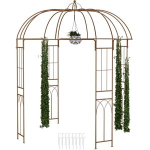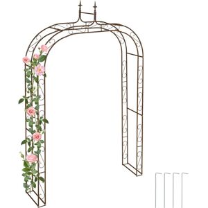 This metal flower arch not only gives climbing plants the support they need to grow and flourish, but also adds to your garden decor. Ornamental and edible plants such as ivy, roses, clematis or vines are beautifully showcased with the garden arbour. The simple design won't steal the show from the plants. Thanks to the stand, you can easily place the weatherproof archway on smooth surfaces and weigh it down with plant pots. Rose Arch in Detail - Dimensions H x W x D: approx. 210 x 280 x 40 cm - Passage H x W: approx. 208 x 236 cm - Stand W x D: approx. 20 x 40 cm - Weight: approx. 4 kg - Material: Steel - Colour: Black Round Garden Arbour for Climbing Plants - Gives ornamental and useful plants support when climbing and growing - For ivy, roses, clematis, vines, raspberries, blackberries and much more. - Simple metal arch skilfully sets the scene for climbing plants - Plant arch with stands can be placed on smooth surfaces - Simply weigh down with flower pots etc. to secure - Can also