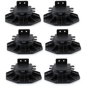 [Robust Polypropylene Construction]: Crafted from top- anti-UV polypropylene, this set of 6 adjustable deck support pedestals offers enhanced durability and corrosion resistance. Its yet strong design eases installation and is an ideal alternative to heavy traditional concrete bases. [Versatile Height Customization]: Effortlessly adjust the height of your deck or platform from 1-3/16inch to 2-3/8inch using the dual adjustment holes provided in each pedestal. This key feature allows for precise leveling of uneven surfaces, height customization for projects, or additional under-deck storage. [Impressive Load Capacity]: Engineered for strength, each pedestal can support a load of up to 4600 lbs at full compression and 2000 lbs at quarter compression, making it suitable for a wide range of applications and ensuring safety even under heavy loads. [Quick & Easy Installation]: Simplify your decking installations with these user-friendly pedestals that come with all necessary hardware. The