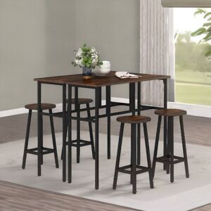 Six-Piece Bar Table Set: This set includes two rectangular kitchen island tables and four matching stools, offering versatility for both small and large families or housemates. Whether used together or separately, it's an ideal addition to kitchens, offices, and dining areas. Sturdy Construction: Built with a strong structure that provides reliable support during use, this dining set features outward-angled legs that enhance stability. Additionally, bottom bars on the seats and table provide a comfortable footrest. Neutral Design: The wood-effect table tops complemented by a black frame create a breakfast bar table and stools set that effortlessly blends into any interior decor. It can be paired with neutral tones or vibrant tableware for a personalized touch. Optimal Dimensions: The table dimensions are 90H x 100L x 40Wcm, while each stool measures 60H x 29.5W x 29.5Dcm, providing ample space for dining and seating comfort. Solid and Durable: The table can support up to 60kg, and each stool has a capacity of 120kg, ensuring durability and longevity. Assembly is required but straightforward with included instructions and hardware. Rafaelo Mobilia Table Top Colour: Brown, Chair Colour: Brown/Black