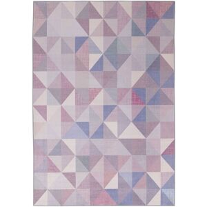Rectangular Rug with Triangular Pattern. This rug suits modern and contemporary interiors. Its geometric pattern is constructed from multiple small triangles to create a patchwork effect. Subtle shades of blue, grey and pinks add colour and complement your room without being overpowering. This rug is perfect for the living room or bedroom, featuring a non-slip underlay. Details: Product Type: Low Pile Style: Modern General Color: Multicolour, Blue, Grey Shade: Light Grey Material Type: Fabric Main Material: Fabric Backing Material: Fabric Material Composition: 100% Polyester Shape: Rectangular Anti-Slip Bottom: Yes GSM: 200 g/m2 Pattern: Geometric Pattern Suitable for Underfloor Heating: No Weaving: Machine Woven Dimensions: Pile Height: 0.5 cm Width: 80 cm Length: 150 cm Weight: 1 kg Offer Includes: 1 x Rug Key Features: Suitable for Underfloor Heating, Reduced Slipping Risk Thanks to the Non-Slip Bottom Layer, Perfect for Both a Bedroom and a Living Room, Eye-Catching Accent Piece,