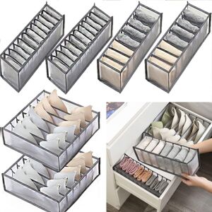 【LARGE CAPACITY】: Three-piece large-capacity underwear container, very suitable for storing bras, underwear, socks, etc., after storage, put it in a closet or drawer to make the room more tidy【THREE-PIECE SUIT】: Faffooz underwear box contains two 6-compartment bra boxes, two 7-compartment panty boxes and two 11-compartment storage boxes, a total of 6 pieces, which can fully meet your underwear storage needs【HIGH-QUALITY FABRIC】: Using high-quality Oxford cloth and nylon mesh fabric, soft and breathable, long-term storage without peculiar smell, fine workmanship, durable, not easy to damage and deform.【FOLDABLE STORAGE BAG】: Foldable storage bag to help you sort items and organize your clothes. make full use of space. The underwear storage box has many grids, which can sort and place a lot of underwear, so that you can more easily find the underwear you want【EASY TO CLEAN】: Faffooz underwear storage box can be washed or machine washed, which can always keep your storage box clean and