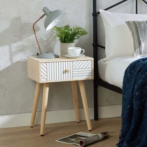 The Chatteris wooden nightstand, crafted with a stylish paper finish and PVC rattan accents. Featuring two spacious drawers for ample storage and supported by sleek black steel legs with a powder-coated finish, this nightstand combines functionality with contemporary design. Flat Packed for easy home assembly. Home Source Modern Wooden Bedside Cabinet 2 Drawers Stylish Bedroom Organiser in Natural