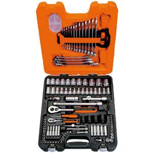 The Bahco S108 Socket & Combination Spanner Set, 108 piece, contains a variety of popular sizes in a handy carry case, with easy identification sizes printed on the tray. Contents: 12 x 1/4in Hex Sockets: 4, 4.5, 5, 5.5, 6, 7, 8, 9, 10, 11, 12 & 13mm10 x 1/4in Deep Hex Sockets: 4, 5, 6, 7, 8, 9, 10, 11, 12 & 13mm20 x 1/2in Hex Sockets: 8, 9, 10, 11, 12, 13, 14, 15, 16, 17, 18, 19, 20, 21, 22, 23, 24, 27, 30 & 32mm6 x 1/2in TORX Sockets: E12, E14, E16, E18, E20 & E244 x 1/2in Hex Impact Sockets: 17, 19, 21 & 24mm4 x 1/4in Phillips Socket Drivers: PH1, PH2, PH3 & PH43 x 1/4in Pozidriv Socket Drivers: PZ1, PZ2 & PZ33 x 1/4in Slotted Socket Drivers: 4, 5.5 & 7mm6 x 1/4in Hex Socket Drivers: 3, 4, 5, 6, 8 & 10mm8 x 1/4in TORX Socket Drivers: T8, T10, T15, T20, T25, T27, T30 & T40 2 x 1/4in Extension Bars: 50 & 100mm1 x 1/4in Sliding T-Bar 100mm1 x 1/4in Universal Joint1 x 1/4in Spinner with 2-Component Handle1 x 1/4in Quick-Release Ratchet 60 Teeth 2 x 1/2in Extension Bars: 125 & 250mm1 x 1/2in Universal Joint1 x 1/2in Spark Plug Socket Hex 21mm (13/16")1 x 1/2in T-Adaptor1 x 1/2in Quick-Release Ratchet 60 Teeth 3 x Hex L-Keys: 1.5, 2 & 2.5mm4 x Flex Head Spanners: 8-9, 10-11, 12-13 & 14-15mm13 x Combination Spanners: 7, 8, 9, 10, 11, 12, 13, 14, 15, 16, 17, 18 & 19mm Supplied on a practical removable tool-rack. Bahco S108 Socket & Combination Spanner Set Of 108 Metric 1/4In & 1/2" Drive in Orange