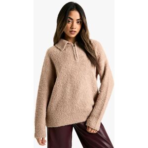 Textured boucle knit for a cosy, tactile feel Distinctive collar detail adds a refined touch Relaxed fit for effortless comfort and style Long sleeves perfect for layering in cooler weather Versatile design suitable for various casual occasions Embrace comfort and style with this boucle knit pullover, a must-have addition to your casual wardrobe. The textured fabric offers a delightful tactile experience, while the unique collar detail adds a touch of sophistication to this laid-back piece. Perfect for those chilly days, this jumper can be easily styled for a range of casual events. Pair it with sleek trousers, as shown, for a polished look, or throw it over your favourite jeans for a relaxed weekend ensemble. The versatile nature of this pullover makes it ideal for family gatherings, coffee dates with friends, or even casual Fridays at the office. Accessorise with a statement bag and some dainty jewellery to complete your look. This Boohoo creation embodies the brand's commitment to delivering on-trend pieces that don't compromise on comfort, ensuring you stay fashionable and cosy throughout the season.