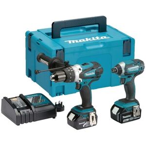 DLX2145TJ LXT Twin Pack 18V 2 x 5.0Ah Li-Ion - MAKDLX2145TJ The Makita DLX2145TJ LXT Twin Pack, contains the following: 1 x 18 Volt DHP458 LXT Combi Drill is an extremely compact tool with an overall length of only 225mm, the shortest in its class It has enhanced dust and drip-proof performance for use in outdoor applications or harsh environments The machine has a battery fuel gauge and a metal gear box for long life It has two variable speeds, an electronic brake and an adjustable side handle for extra control during use No Load Speed: 0-400/0-2,000/min Blows per Minute: 0-6,000/0-30,000/bpm Max Torque: 44/88Nm Torque Settings: 21 + drill Capacity: Wood: 65mm, Masonry: 16mm, Steel: 13mm Weight: 2.2kg 1 x 18 Volt DTD152Z LXT Impact Driver has a compact design with an overall length of only 137mm Although small it is packed with all metal gears and mechanical 2-speed control The variable speed control trigger with forward/reverse rotation provides control, even in tough applications
