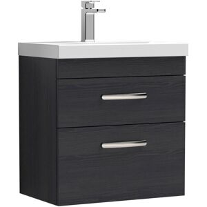 The Athena vanity unit is one of the most popular and versatile models in Nuie's portfolio. Available in 4 popular colour schemes, Athena basin cabinets benefit from easy-to-use strap handles and soft-closing doors and drawers as standard. The Athena model can be personalised by choosing between multiple basin designs, or upgrading the design and colour of the handles. Features and Benefits: Contemporary wall hung vanity unit providing functional storage Contemporary charcoal black woodgrain finish - a dark wood shade Includes minimalist ceramic basin featuring compact bowl size and slim 18mm profile 1-drawer configuration, featuring soft-closing action for premium feel Supplied with satin nickel D-shaped strap handles (192mm centres) as standard Cabinet carcass manufactured from 18mm MFC with 18mm MFC fascias (door/drawer fronts) Vanity unit supplied rigid - no assembly required on the carcass/cabinet Unit includes pre-drilled blind holes for installation of handles (supplied loose)