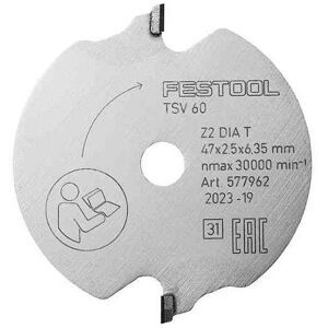 The diamond scoring saw blade scores the top layer of the material, ensuring a splinter free cut on both sides. Perfectly designed for coated or veneered chipboard. Two diamond teeth enable splinter free cuts, even in hard to machine materials. Extremely long service life thanks to the use of diamond cutting teeth. The conical tooth shape makes it easy to adjust the scoring width to the saw cut. Splinter free cut on both sides For veneered and coated panels Saw blade diameter 47mm Cutting width 1.95 2.5mm Hole diameter 6.35mm Teeth 2 Tooth shape T, trapezodial