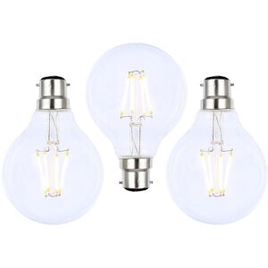 Upgrade the lighting in your home with the 3 Pack of 4W LED BC B22 Vintage Filament Globe Bulbs in Clear. The globe design allows for a wider spread of illumination and the clear glass emits practical lighting which will be useful in rooms like the kitchen or a home office. Product Type: Light Bulb Cap Type: B22 Bayonet Cap Shape: Globe Wattage: 4 Watt Voltage: 240 Volt Light Source: LED Lumen: 300 lm Colour Temperature: 2200 K Warm White Energy Efficiency Rating: G Average Lifespan: 15,000 hrs Length: 11.5 cm approx. Diameter: 8 cm approx. Material: Glass Colour: Clear Technical Information Weight: 0.24 kg
