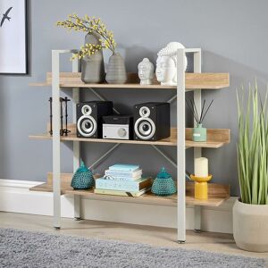Ideal for any living space, this shelf is a stylish way to display any ornaments in your home. Expertly made from Sonoma oak, this modern piece features three separate shelving planks for a wealth of space. The strong grey metal frame gives added industrial vibes. Size = (W) 120cm (D) 28cm (H) 106cm