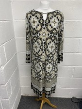 Geometric Print Midi Dress by Roman UK Add some trendy abstract prints to your daywear with this bold contrast print dress Finishing at a flattering midi length this style boasts a comfy round neckline and long sleeves with elasticated cuffs It is made from a breezy woven material with a zip and button fastening A smart casual staple for any occasion this dress would look great in the office or dressed up with a blazer and boots when the weather gets cooler Womens Regular fit True to size 100 Polyester Machine Washable Length Approx 125cm 100 Polyester