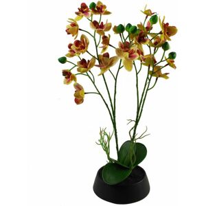 Indulge in the exquisite beauty of our 110cm Large Yellow Peach Orchid Plant, meticulously crafted with 41 REAL TOUCH flowers. Botanik, the connoisseurs of orchids, offer a highly realistic collection available in a variety of colors. The lifelike quality of these orchids is unparalleled, with each flower feeling just like a real orchid. Adorn your space with this stunning plant, measuring 110cm x 40cm x 40cm, and featuring wired stems that can be shaped to perfection. For an added touch of elegance, pair it with one of our decorative planters (sold separately). The pot measures 27cm (d) x 23cm (h) and is made of weighted plastic for stability. Leaf Large Yellow Artificial Orchid Plant Artifcial 41 REAL TOUCH flowers Botanik in Green