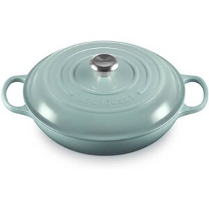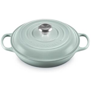 This Le Creuset Signature Sea Salt Cast Iron 30cm Shallow Casserole is perfect for a wide range of dishes - from creamy risottos and tender, flavourful meat and vegetables to crisp, golden pies and tarts. The large, flat shape and shallow sides make this cast iron casserole ideal for browning meat and vegetables, stir-frying, simmering casseroles, baking and serving at the table. ADVANCED SAND INTERIOR ENAMEL - durable and easy to clean, specifically engineered to resist staining and a higher resistance to wear and tear. Significantly improved durability and performance including 35 - 40% more resistance to thermal shock, 16% more resistance to mechanical shock (chipping from utensils), more resistance to acid attack, 24% more resistance to enamel erosion, even less absorption of food colours, more durable against repeated dishwasher use and 45% easier to clean. LARGE HANDLES - easier to grip and lift, even with oven gloves or mitts, when full. ERGONOMIC STAINLESS STEEL KNOB - stylish and durable brushed stainless steel finish. Provides an easy, comfortable and natural grip. Suitable for all temperatures. ENGINEERED LID - tight fit with built-in stabilisers for enhanced moisture lock-in and flavour when cooking. Handcrafted at the Le Creuset foundry in northern France since 1925, Le Creuset casseroles are made from premium quality cast iron ensuring each product is beautifully finished and long-lasting. A true kitchen essential, the cast iron shallow casserole is not only perfect for making casseroles, stews and one-pot roasts but is versatile enough for baking cakes and bread. Le Creuset cast iron cookware also works efficiently at low to medium cooking temperatures and retains heat effectively, ensuring food stays warm for longer. Le Creuset cast iron casseroles are suitable for all hob types (including ceramic, halogen, induction, gas and oil or wood) and are also oven and grill-safe. Dishwasher safe, although hand washing is recommended. The Le Creuset 30cm shallow cast iron casserole is ideal for 4-6 people and has a capacity of 3.2L. Dimensions: L40.2cm x W31.7cm x H13.5cm. Weight: 5.56kg. This Le Creuset Signature Sea Salt Cast Iron 30cm Shallow Casserole is supplied with a manufacturer's lifetime warranty.