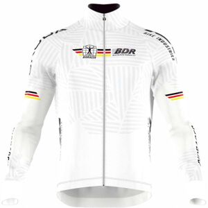 Ride BDR's iconic white with pride. Meet the perfect jacket to show your endless love for the German national team as they compete for silverware at international championships.Whether you're on a coffee ride or a long training day: this Icon Tempest Jacket with a high collar got you covered when it's cold outside. It keeps you fast and warm without sacrificing all-day comfort.Insulating and breathable, the brushed Tempest fabric keeps you comfortable in cold weather conditions. Thanks to its durable water-repellent treatment, you are optimally protected from drizzle and light rain.This Icon Tempest Jacket combines a comfortable body fit with strategically placed features: soft cuffs for more comfort and an elastic waistband with a silicone gripper to prevent your jersey from riding up while cycling.A qualitative YKK zipper with an auto-lock slider and inner zip guard allows for easy operation while on the bike. The three easily accessible open back pockets offer enough storage space for all your valuables.Features:- Body fit for more comfort in cycling position - 3 easy-access back pockets to store all your valuables - Silicone gripper to prevent your jersey from riding up while cycling - Long sleeves with soft cuffs for more comfort - Insulative brushed fabric and high collar keeping you warm - Durable water-repellent fabric protecting you from drizzle - Qualitative YKK zipper with auto-lock slider preventing unwanted opening - Inner chin guard protecting your skin Specifications:- Weight: 0,30 kg- Fit: Body fit- Sports: Road- Weather: Cold, Midseason- Temperatures: 0-10°C