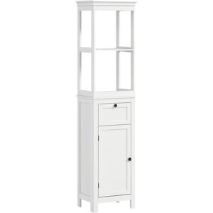 Maximise your bathroom space with the HOMCOM Slim Bathroom Cabinet. This chic piece combines style and functionality, featuring two open shelves and a drawer for easy access, plus a cabinet with a three-level adjustable shelf for tailored storage. Its slim design fits snugly into small spaces, ensuring your bathroom stays organised and stylish. Specifications: ● Colour: White ● Material: MDF ● Overall Dimensions: 40W x 30D x 165H cm ● Drawer Inner Size: 24W x 24.5D x 10.5H cm ● Cabinet Inner Size: 34W x 26.5D x 55H cm ● Open Shelf Size: 34W x 27.5D x 36.5/34.5H cm ● Bottom Height: 7 cm ● Weight Capacity: (overall) 23 kg, (drawer) 3 kg, (shelf) 5 kg ● Item Label: 834-720V00WT Features: ● Slim cabinet maximises storage with shelves, drawer and cabinet ● Adjustable three-level shelf inside cabinet suits various storage needs ● Magnetic door and drawer are slow-closing for safety and quiet operation ● Chic, stylish knob handles enhance aesthetic appeal ● Anti-tipping design provides added