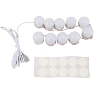 3 COLOR TEMPERATURE, 10 ADJUSTABLE BRIGHTNESS: This makeup lamp has 3 color temperature, white, warm, neutral light, 10 levels of brightness adjustable, which can meet your different needs for lighting during makeup. ENERGY SAVING: Led mirror light, using professional LED lights, power saving, longer use time, but also ensure that the eyes will not hurt the eyes when facing the vanity lights for a long time. USB CABLE: Comes with 7.55ft long USB charging wire. 5V USB cable design allows multiple connecting options(USB charger, power bank, laptop USB interface, etc), convenient for anywhere. EASY INSTALL: No wall drilling or no electrical wiring is required, just stick on firmly suction cup mirror light to a wall mirror or mirror frame and you're good to go. Ideal for bathroom mirror lighting, vanity table and bedroom decorate, chose wisely on where you would like your lights. MAKE MAKEUP MORE DELICATE: Led vanity lights, 5 light bulbs, PC lampshade, makeup has no dark corners and no