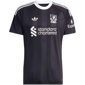 Created to keep clean sheets on the road, this juniors Liverpool FC goalkeeper jersey shares its Trefoil and vintage club crest with the clubs third kit outfield shirts.Clad in imposing black colours, its designed to stretch with your every movement for first-class keeping.Behind the scenes, AEROREADY manages moisture to keep you focused on every football threat.The adidas jersey Reds keepers wear as part of the clubs classy third kit.FEATURES:-Regular fit.-Crewneck.-100% polyester (recycled).-AEROREADY.-Liverpool FC woven crest.-AEROREADY.