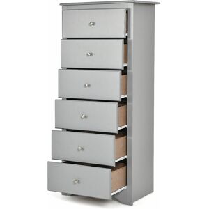 This 6 drawer chest in white finishes blends seamlessly with modern decor and makes a smart addition to a bedroom. Combine with practical and attractive, this white chest of drawers provides enough storage space for you to take in and sort sundries. More comes with exquisite drawer knobs and smooth sliders that it is easy to access to your items. Additionally, using p2 grade MDF, this chest of drawers is durable and sturdy enough to services long time. For safety reasons, the bottom of our wardrobe is designed to be wavy while is equipped with anti-reverse devices. Compact and premium 6 drawer chest of vertical storage suitable home and office use. Features: Chest of 6 drawers provides enough storage space Elegant white 6 drawer chest incorporate various styles decor Spacious top gives extra displace space for you Drawers run smoothly on metal glides with built-in safety stops Exquisite metal knobs for easy open and close drawers Vertical storage design plus compact bottom is