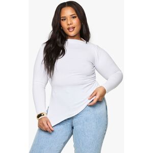 Asymmetric neckline for a modern twist Side ruching detail adds flattering texture Long sleeves for versatile wear Asymmetric hem creates a unique silhouette Jersey fabric offers comfort and ease of movement Embrace effortless style with this versatile plus-size top from Boohoo. The asymmetric neckline and hem create a captivating silhouette, while the side ruching adds a touch of texture and flatters your curves. Perfect for casual outings, this long-sleeved jersey top pairs beautifully with your favourite jeans for a relaxed day look. Style it with wide-leg trousers and trainers for a trendy weekend ensemble, or dress it up with a midi skirt and ankle boots for family gatherings. The soft jersey fabric ensures all-day comfort, making it an ideal choice for various casual occasions. Whether you're heading to brunch with friends or running errands, this top will keep you looking chic and feeling confident.
