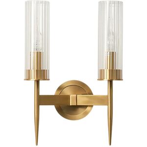 Boost the atmosphere of your contemporary living area with the elegant Double Gold Glass wall light. Featuring a stylish stainless steel frame in gold and a torch-shaped glass shade, this fixture brings a sense of refinement to any space. Suitable for indoor use and compatible with a 220V AC input voltage, this wall light is perfect for setting a cosy and welcoming mood. Simple to set up with the provided metal mounting hardware, this 40cm wall light is a fashionable and modern choice for your home decor. Brayden Studio