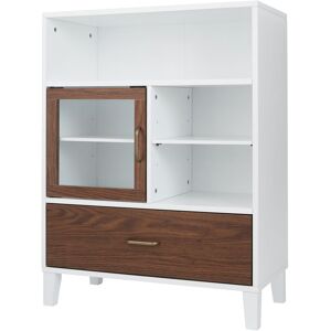 The Tyler two tone wooden freestanding bathroom cabinet features a white and wooden finish which fits in with any style of bathroom decor. The contrast-colour design gives you a brand new look for this accent piece. The adjustable-shelf design creates an extra large storage space for different size of items. The door-shelf-drawer design allows you to place your items according to their needs. You can purchase this bathroom cupboard unit alone or you can coordinate with other Tyler Collection bathroom storage items. STYLE: This Tyler two tone free standing storage cabinet features a mid century-modern white and wooden finish. Suitable for all styles and designs of bathroom. The contrast in colour design gives you a high-class fresh look. EXTRA STORAGE: This Tyler two tone bathroom cabinet has 2 doors with 2 adjustable shelves allowing for extra storage space, perfect for all kinds of items. Take away your worries about storage space with this unit. DURABILITY: Crafted with quality wood
